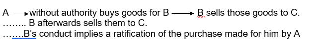 (a) A, without authority, buys goods, for B. Afterwards B sells them to C on his own account; B’s conduct implies a ratification of the purchase made for him by A.