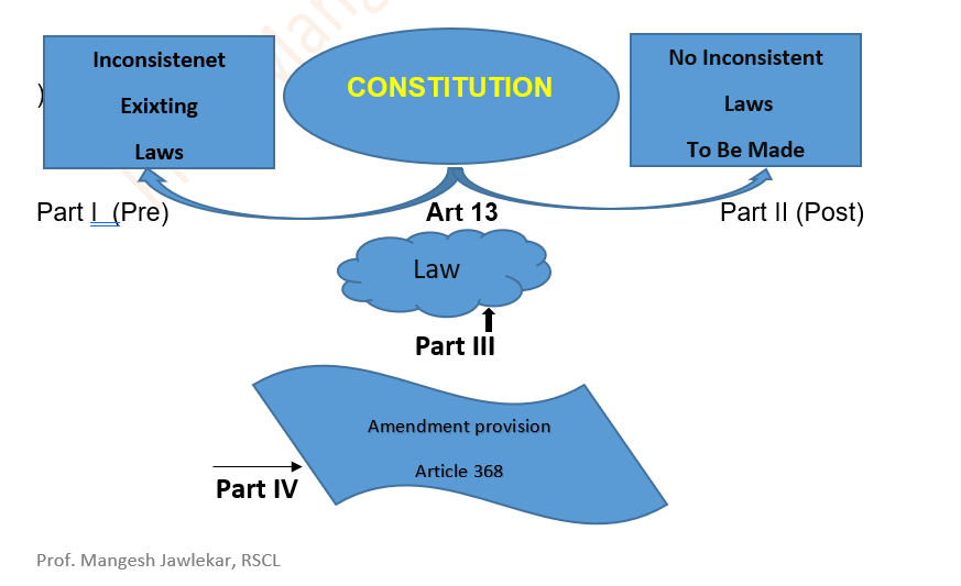 • According to Article 13(1) of the Indian Constitution, all laws in force in the territory of India immediately before the commencement of this Constitution, in so far as they are inconsistent with the provisions of this Part, shall, to the extent of such inconsistency, be void.